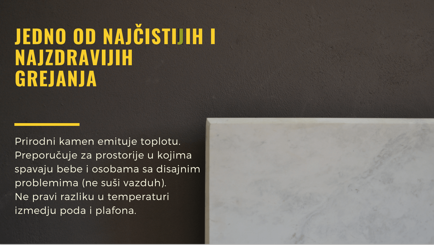 Radijatori se izrađuju tako što između 2 mermerne ploče ugrađuje se grejač “Kanthal” uvoz iz Švedske.